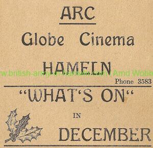 © David Smith & Arnd Wöbbeking Just a short report today….. David Smith 29 Field Squadron RE loved to go with his lovely wife to the Globe Cinema in Hameln during his time here. He found today one of the programs. Very cool an rare document. Thanks a lot David! Heute gibt es nur einen …